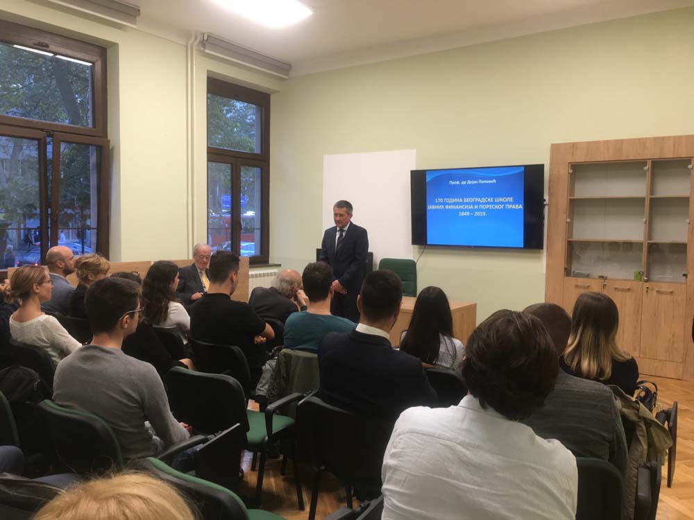 Поводом отварања семинара Јована Ловчевића, председник Српског Фискалног Друштва, проф. Др Дејан Поповић одржао је предавање о 150 година дугом историјату изучавања науке о финансијама, јавних финансија, финансијског и пореског права на Правном факултету Универзитета у Београду и великанима ових научних дисциплина. Присутнима се обратио и декан Правног факултета проф. Др Зоран Мирковић, који је изразио захвалност и поздравио гест очувања традиције донаторства.