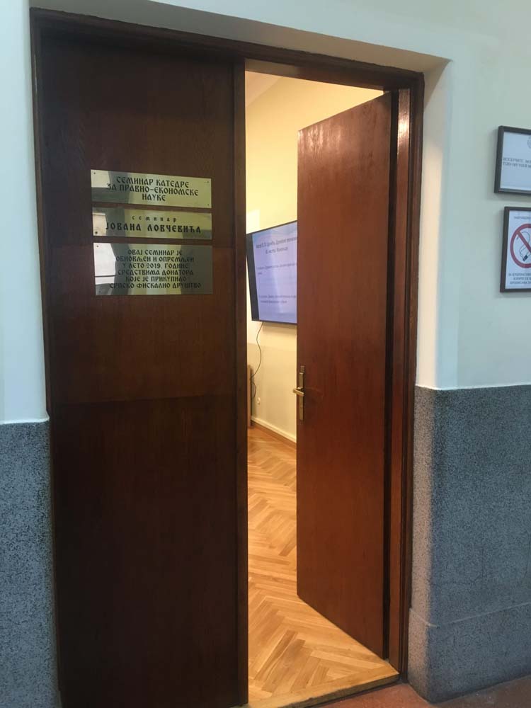 Семинар Јована Ловчевића потпуно је обновљен и опремљен најквалитетнијом опремом, складу са најсавременијим захтевима извођења наставе. Биће намењен извођењу наставе на пореским предметима, односно предметима Катедре за правно-економске науке којима ови предмети припадају, и то на основним, мастер и докторским студијама.